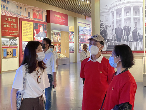 為學習貫徹習近平新時代中國特色社會主義思想主題教育走深走實, 6月13日上午,離退休黨委聯合藝術設計學院黨委組織離退休黨員代表、學生黨員代表、在職黨支部共40余人,前往中國共產黨歷史展覽館開展“學黨史、強黨性”“老少”共建主題黨日活動,活動由離退休黨委書記韓福華主持。
