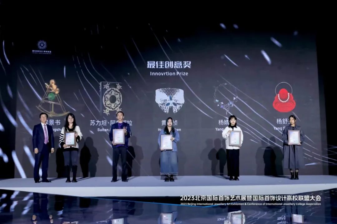 同期舉行了“未來(lái)·域”首飾設(shè)計(jì)全球競(jìng)賽及頒獎(jiǎng)禮。大賽是由國(guó)際首飾設(shè)計(jì)高校聯(lián)盟主辦的年度重點(diǎn)賽事,本屆緊扣“未來(lái)”主題,評(píng)審委員會(huì)根據(jù)概念的先鋒性、視覺(jué)的創(chuàng)新性、工藝的完成度,圍繞未來(lái)價(jià)值、社會(huì)價(jià)值、市場(chǎng)應(yīng)用等進(jìn)行討論評(píng)選,最終評(píng)選出獲獎(jiǎng)作品(獲獎(jiǎng)名單見(jiàn)下圖)。北京服裝學(xué)院黨委副書(shū)記倪賽力,黨委常委、副院長(zhǎng)詹炳宏,第三屆國(guó)際首飾設(shè)計(jì)聯(lián)盟主席王敏,百泰集團(tuán)創(chuàng)始人周桃林為獲獎(jiǎng)代表頒發(fā)證書(shū)和獎(jiǎng)杯。