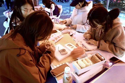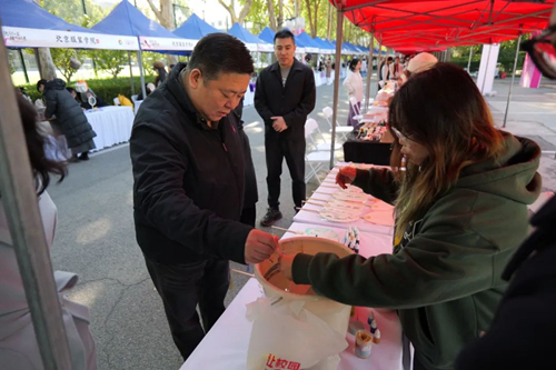 集市現場氛圍熱烈本屆創意集市首次引入互動體驗環節,聚焦漆扇、陶藝、羊毛氈、盤扣、中國結等傳統工藝,通過互動實踐,讓學生深入了解、體驗傳統手工藝的獨特魅力,引領學生感受技藝背后蘊含的中國文化思想內核。