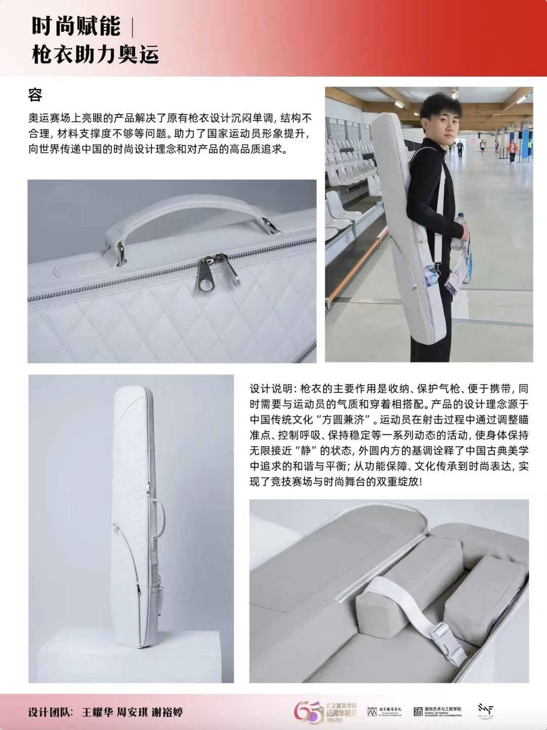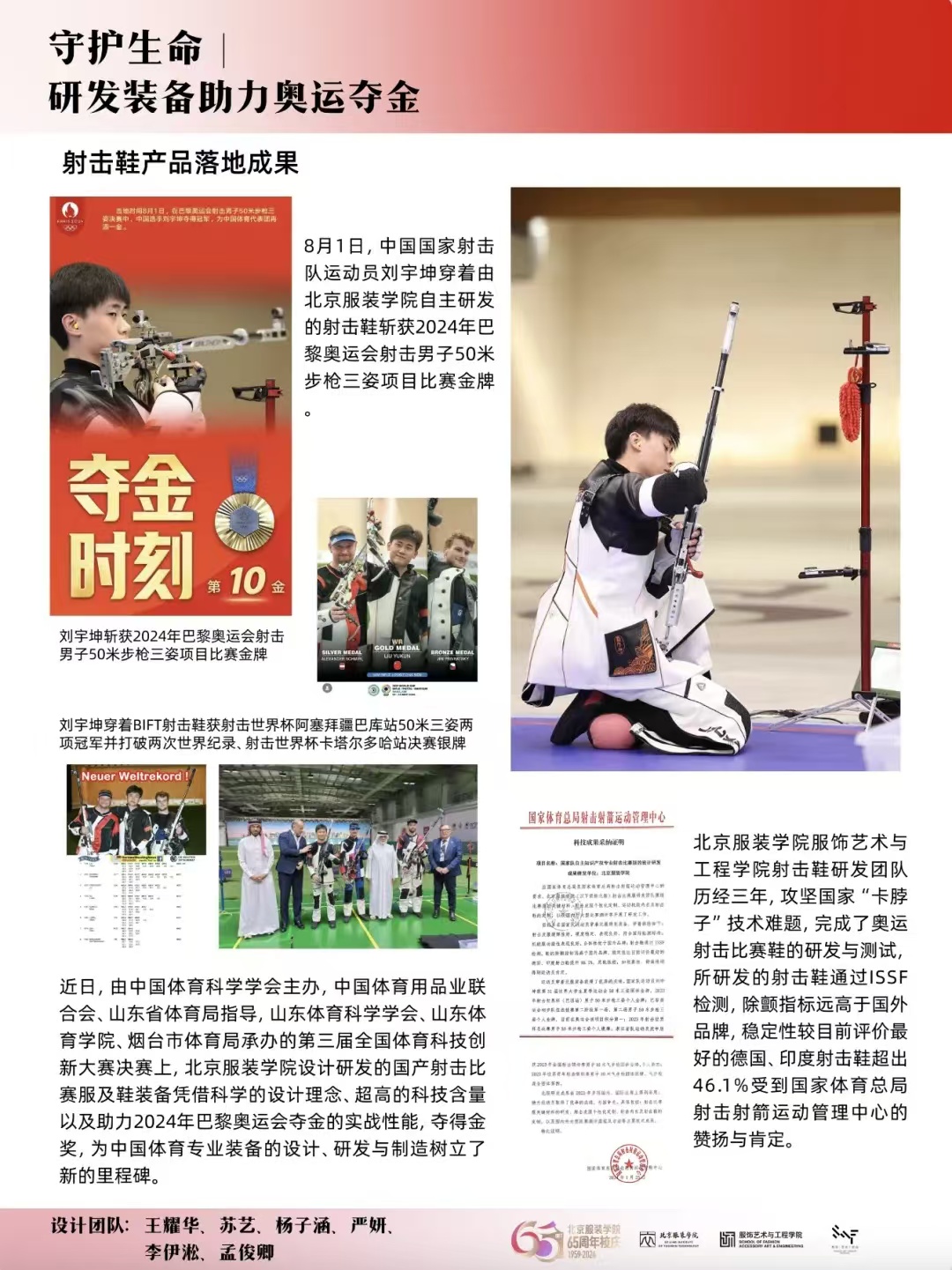 服飾藝術與工程學院射擊鞋研發團隊由黨員師生組成,團隊攻堅克難,實現國產射擊鞋“卡脖子”問題,射擊鞋除顫指標較國外品牌提升46.1%,大大提高運動員重心穩定性和舒適性,助力中國射擊隊運動員劉宇坤奪得2024年巴黎奧運會射擊男子50米步槍三姿項目比賽金牌。此外,劉宇坤在比賽中使用的槍衣也由學院研發,助力國家運動員形象提升,向世界傳遞中國的時尚設計理念和對產品的高品質追求。學院還接到國家體育總局游泳運動管理中心委托,需要在十天內設計并制作2024年巴黎奧運會中國游泳協會及項目徽章,作為國家游泳、跳水、花樣游泳隊伍的交換徽章送至賽場。由黨員師生迅速組隊的設計團隊完成十二款徽章和行李牌設計通過審核后,為完成近兩萬枚徽章制作,設計團隊連續通宵高強度推進開模、打樣等工作,最終確保準時準點、保質保量交到國家隊手中,交換徽章跟隨中國代表團將奧林匹克文化與精神傳播到世界各地。