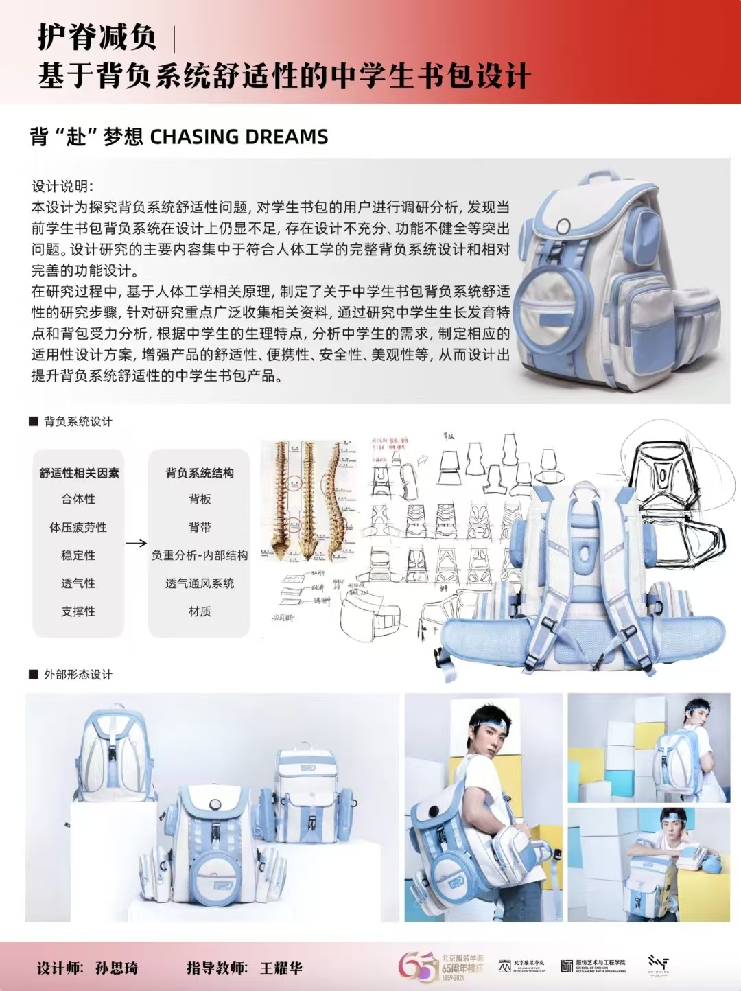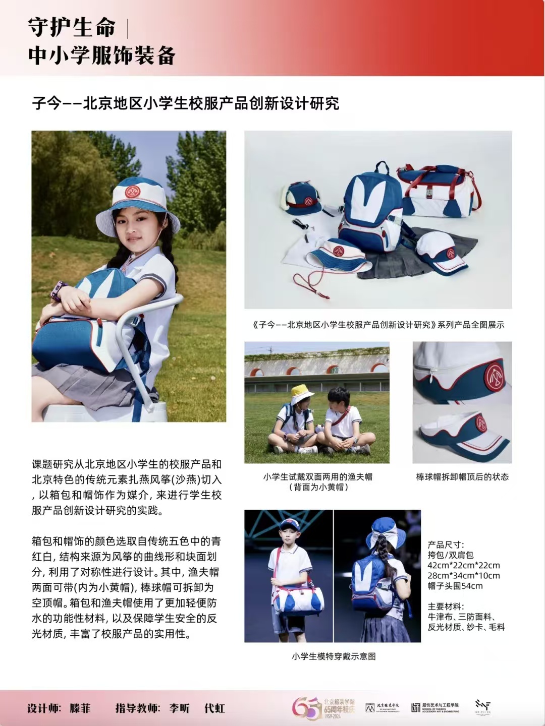 學院產品設計專業黨員師生關注中小學服飾裝備設計創新,加強新材料、新工藝、新版型和人體工學等方面研究,力求為中小學生群體提供更多集合功能性、美觀性和文化性的服飾裝備產品。