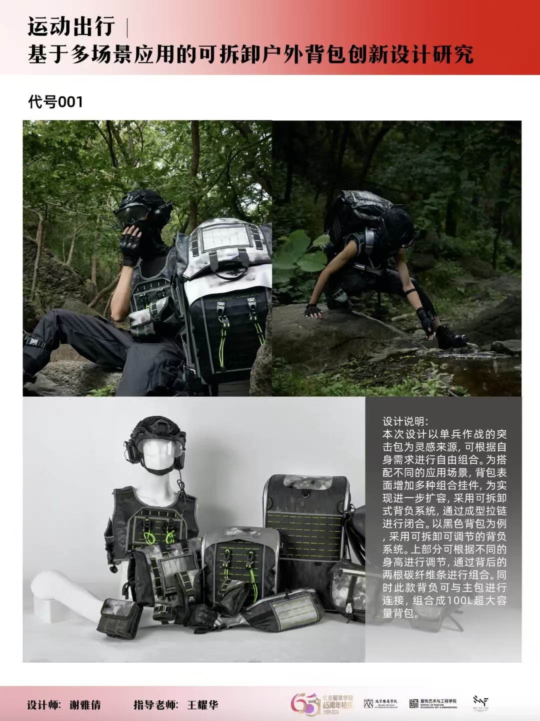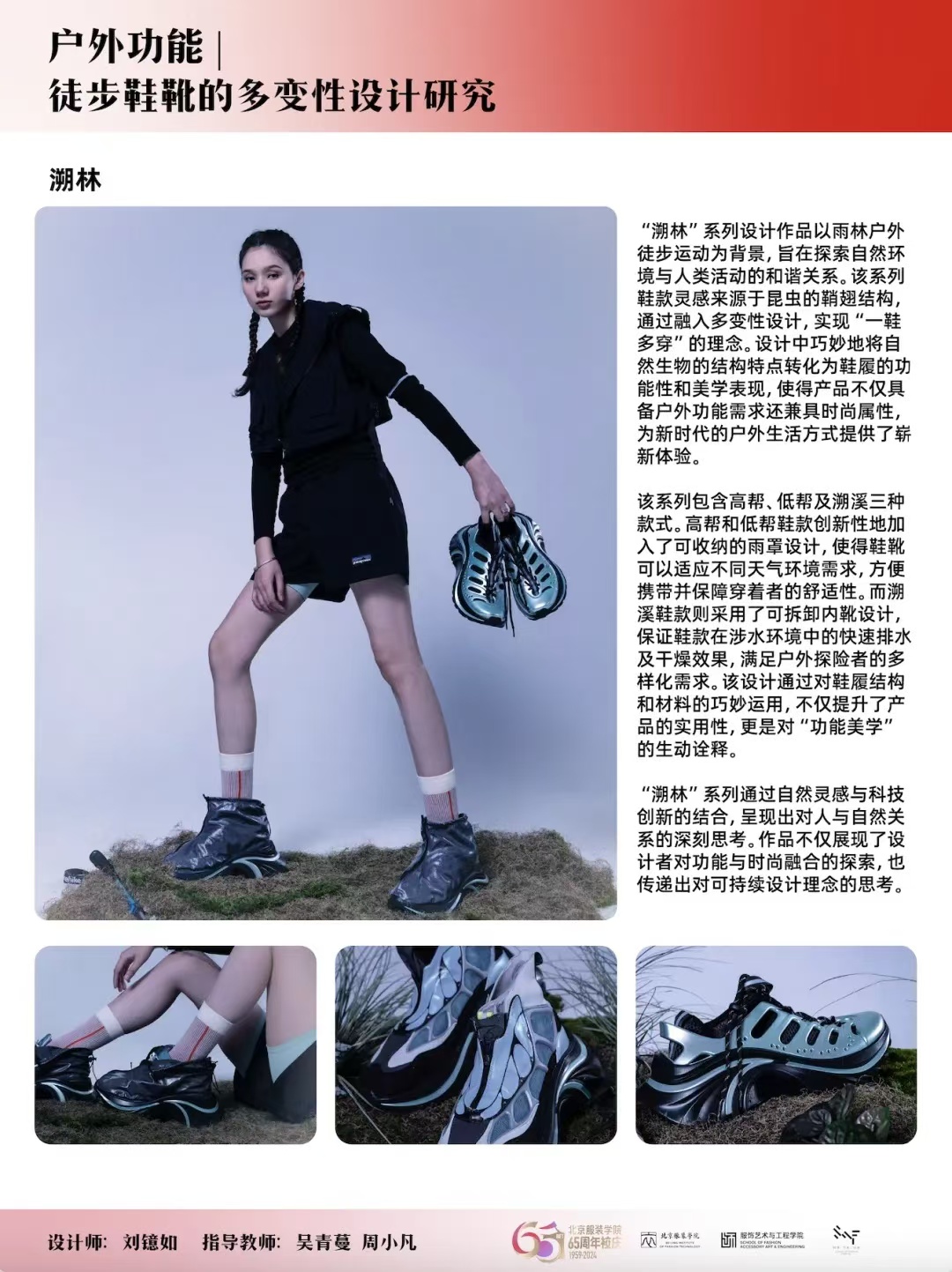 學院始終堅持“為人民而設計”,師生在面向戶外活動、應急救援多場景應用下,研發各類適用的鞋品箱包。代表性成果包括背負式救援背囊、戶外徒步鞋靴等。