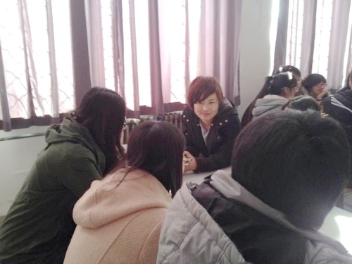 此次活動的話題是電影,在老師們的帶領下同學們首先依次做了簡單的自我介紹:每名同學介紹自己的名字和想要成為的一種動物以及說明選擇這種動物的原因,并且后面的一名同學在開始自我介紹前要重復上一人所說,大家彼此熟悉的同時也慢慢進入英語練習的氛圍中。之后,同學們開始了分組討論,原本安靜的教室很快就沸騰了起來:風格迥異的電影、絲絲入扣的電影情節、婉轉悠揚的電影主題曲使得同學們沉浸在英語的樂園中大快朵頤、樂而忘返。