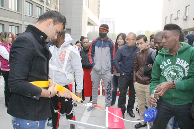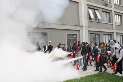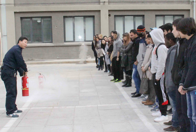 【新聞中心訊】10月29日上午10點,國際學院組織外國留學生在學校禮堂前廣場進行專題消防安全實踐培訓。整個培訓由保衛處專職消防員負責講解,國際學生整齊列隊,嚴肅認真地學習了滅火器的使用要領、安全逃生緩降繩的解系方法等等消防安全知識。國際學生在保衛處老師的親手指導下,拿起滅火器、系上安全繩,通過親身實踐來學習消防安全知識。