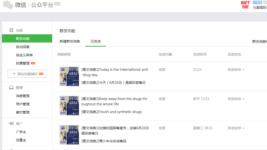 為逐步提升禁毒宣傳活動(dòng)的熱度和關(guān)注度,國(guó)際學(xué)院自6月24日起連續(xù)3天通過(guò)公共微信平臺(tái),推送禁毒宣傳資料,就合成毒品及其危害性進(jìn)行了詳細(xì)解釋和說(shuō)明,號(hào)召全體學(xué)生共同努力,自覺(jué)抵制毒品進(jìn)入校園,配合公安機(jī)關(guān)和學(xué)校,凈化校園環(huán)境。