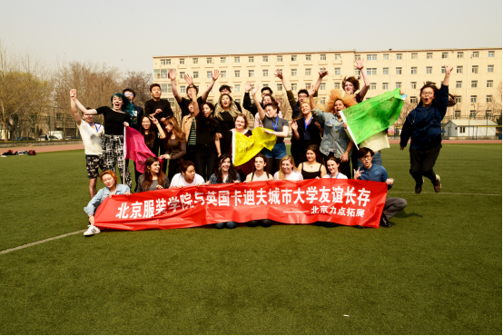 藝術樓前合影留念英國卡迪夫訪學活動是卡迪夫城市大學在歐盟教育基金會的支持下,開展的首次藝術設計交流活動,最終確定了在中國藝術設計高等教育領域的重要戰略合作伙伴北京服裝學院進行。此次活動將開展為期一周的時間。在這一周里英國同學與我校國際班的同學將形成“1+1伙伴”,一起參觀民族服飾博物館,聆聽學術講座,觀看時裝秀表演,體驗手繪、扎染、金屬工藝等北服特色課程;參與中國傳統美食活動“包餃子”;赴南鑼鼓巷、798藝術區、古北水鎮等地感受傳統與現代高度融合的北京,深度交流加深彼此對中英文化的了解。