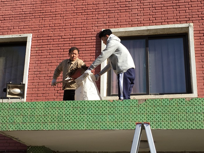 隨著天氣轉(zhuǎn)暖,雨季即將來(lái)臨,北校區(qū)領(lǐng)導(dǎo)對(duì)于因天氣情況而帶來(lái)的安全隱患的排查與處理進(jìn)行了細(xì)致部署。2016年3月23日上午,為了防止樹(shù)枝、樹(shù)葉、渣土等雜物堵塞屋頂排水管道而導(dǎo)致房屋滲水的情況發(fā)生,北校區(qū)綜合辦公室開(kāi)展了一次全面而細(xì)致的樓頂、雨蓬清理工作。23日上午9時(shí)許,在綜合辦主任杜云凌老師的帶領(lǐng)下,綜合辦老師及工作人員集體出動(dòng),對(duì)校區(qū)各教學(xué)樓、宿舍樓及活動(dòng)中心的屋頂及雨蓬進(jìn)行了全面清掃。這些區(qū)域由于長(zhǎng)時(shí)間無(wú)人使用及清掃,導(dǎo)致了很多雜物的積存,經(jīng)過(guò)現(xiàn)場(chǎng)檢查,發(fā)現(xiàn)不少排水管道已經(jīng)被堵塞,嚴(yán)重影響雨天排水的正常使用。因此,在清理過(guò)程中,各位老師態(tài)度認(rèn)真,分工明確,有的負(fù)責(zé)登高清掃,有的負(fù)責(zé)搬運(yùn)渣土,有的負(fù)責(zé)遞送工具。整個(gè)清理工作井然有序,效果明顯,確保了清掃工作做到實(shí)處,充分體現(xiàn)了各位老師不怕臟不怕累的工作精神。截止上午11時(shí)許,各樓屋頂?shù)那鍜吖ぷ饕呀?jīng)全部完成。