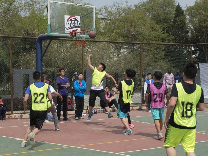 哨聲一響,身著粉色球衣的商一隊先取得球權,30號徐子玉快攻上籃卻沒有投進。緊接著,身著黃色球衣的22號敖軒連進兩球,材料隊暫時領先。隨后,商一隊憑借隊友間的默契配合,先由商一隊28號鄭亞飛一記三分遠投,30號張廉義再憑借身高優勢為隊友補籃獲得兩分。上半場結束時,商一隊以9分領先。下半場開始后,剛上場的商一隊29號姜藝維快攻上籃得兩分,給了材料隊一個“下馬威”。緊接著,同樣是剛上場的材料隊21號張同喆三步上籃得分回敬對手,兩隊的比拼進入白熱化階段。之后商一隊的25號常爍又發起猛烈攻勢,接連用快攻躲避對方防守,更是遠投三分,將比分差距拉大到20分。比賽進行到最后一節時,材料隊的球員們憑著比賽精神不放棄希望,22號敖軒和17號王惜亮奮力追擊,為材料隊爭回6分,但仍然無法扭轉局勢。最終比分33:57,商一隊勝出。