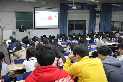 【新聞中心訊】4月14日晚7點,為及時總結近期材料科學與工程學院全體學生校園活動、課堂學習以及課后自主學習等方面的經驗教訓,材料科學與工程學院在西階梯教室召開了一次以“收心向學”為主題的全體班會。輔導員王峰老師以“一場籃球賽,一本書,一份檢討,兩個人”為提綱,成功吸引了同學們的眼球,讓他們更加期待此次班會的開始。