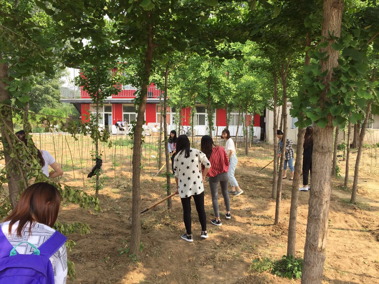 早上八點出發,從北京服裝學院驅車至太陽村的一個小時車程中,同學們就展現出自己的熱情,想到馬上就要參加黨支部的義務勞動,都精神抖擻、躍躍欲試。太陽村名為“村”,其實是一個慈善組織。十多年來太陽村無償代養代教服刑人員的子女。大家經常來到太陽村,也是為這群小朋友獻出自己的一份關愛。此次兩個黨支部被分配的任務是為太陽村種植的小樹苗澆水和鋤草,在分配完任務后,大家就各自拿著農具在田間地頭開展勞動。