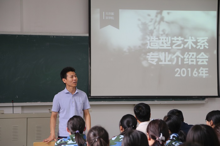 9月1日下午14:00,北京服裝學院造型藝術系全體新生在北校區教學樓101室舉辦了專業介紹會。出席此次會議的有造型系主任田輝教授,黨總支書記吳小軍,系副主任關立新副教授,黨總支副書記崔敏,辦公室主任胡志宇,中國畫教研室副主任安佳教授、油畫教研室郭文寧副教授、雕塑教研室主任劉玉庭教授。由系副主任關立新副教授主持會議。