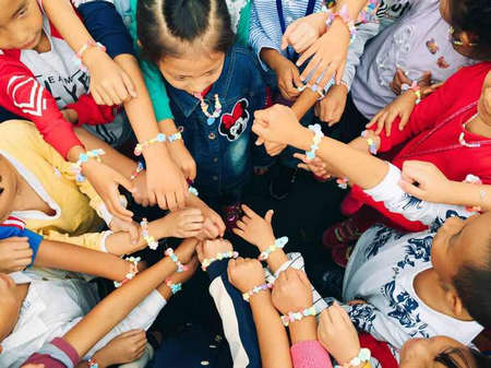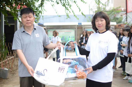 9月18日,北京服裝學院繼續教育學院副院長李曉玲、院長助理賈雙燕、渣打銀行北京分行副行長張春龍一行,帶領北服國際班大一新生50人來到京郊燕京小天鵝公益學校開啟“志愿者服務日”活動,為該校1-6年級10個班級近400名小學生,帶去北服學子的愛心書包與文具用品,上了一堂別開生面的設計課。