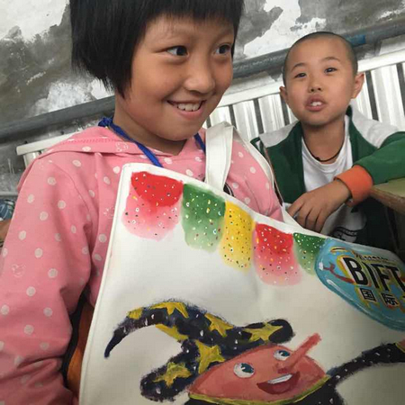 作為北京服裝學院的學生,本碩連讀國際班的每一位同學都青春激揚,其設計夢想都是充滿了光明與希望。2016年度“北服國際創意大賽”要求每一位來自北服國際班的新生發揮自己的創意,用獨一無二的設計打開燕京小天鵝公益學校學生對于向往美好與美麗的大門,在北服國際的書包上繪畫出北服學子的愛心。通過運用繪畫工具以及綜合材料(如水粉、丙烯、馬克筆、紡織品面料、皮革等)對北服國際的白色背包外觀進行創意設計。天下興亡,匹夫有責,每個人都應為社會的進步做出自己應有的貢獻。當大學生拉著小學生的手,為他們講述自己的設計理念、期望與祝福時,燕京小學的同學們認真的傾聽、暢想,北服國際的大學生們也深感自己肩上的使命任重道遠:我們設計夢想,我們也溫暖生活;我們熱愛藝術,我們也熱心公益;我們創意飛揚,我們也肩負使命;我們駐足北服,我們要走向世界!我們弘毅日新,我們為了衣錦天下!