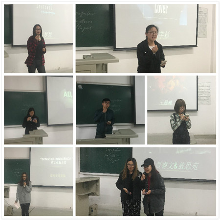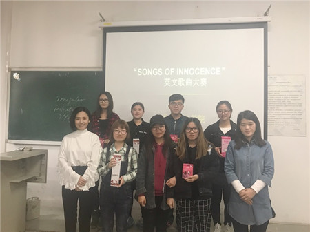 【新聞中心訊】為豐富語言文化學院同學們的課余生活,提高同學們學習英語的熱情,2017年4月10日下午,由語言文化學院學生會主辦在主教學樓107教室舉了 "songs of innocence " 英文歌曲大賽。