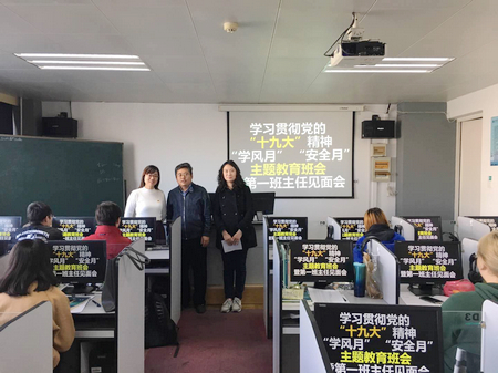 黨的“十九大”勝利閉幕之際,按照學校黨委要求,語言文化學院黨總支于10月30日在5號樓(綜合樓)709教室召開“學習貫徹‘十九大’精神,抓好‘安全教育月’‘學風建設促進月’工作”學生動員大會。班主任沈海洋組織全體2015級學生參會,黨總支書記、2015級第一班主任趙二東出席大會做動員,會議由黨總支副書記姚冬梅主持。