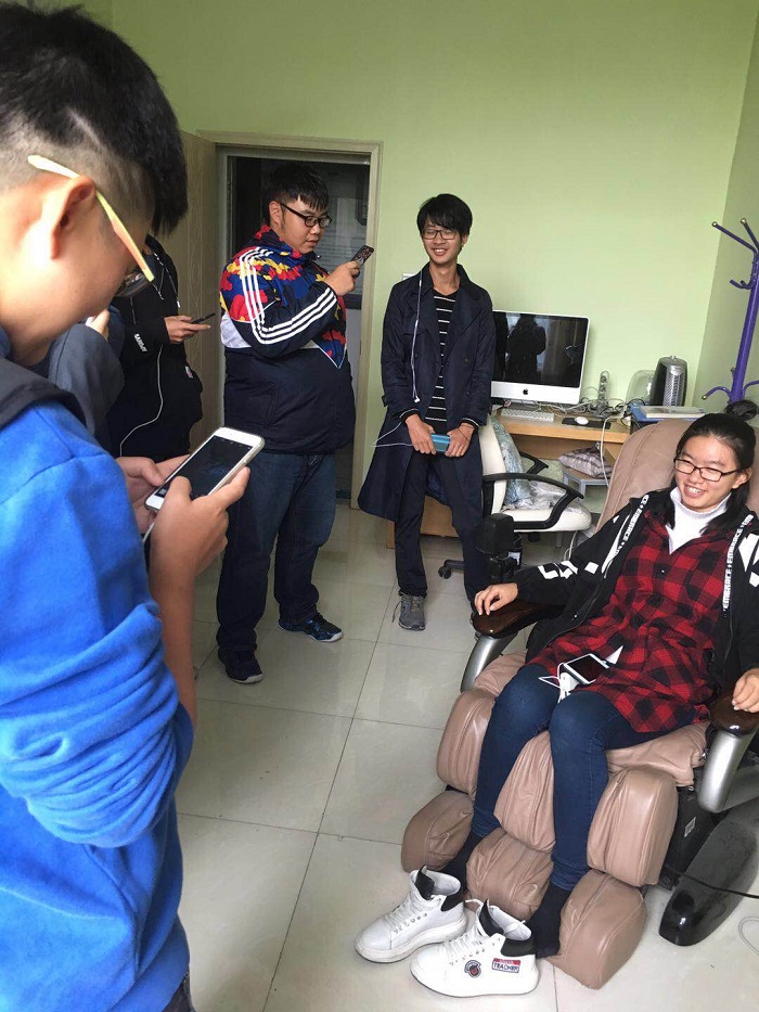 活動開始,第一個班的同學來到咨詢中心參觀,同學們說他們非常喜歡心理咨詢中心的那種氛圍,溫暖,溫馨。一個班接一個班的同學按照規定的時間過來參觀,有的同學在按摩椅上放松這一個星期的勞累,有的同學進行沙盤游戲來表述自己的內心,有的喜歡聆聽音樂,而有的喜歡閱讀。心理咨詢中心助理們也對這次活動進行拍照、記錄。