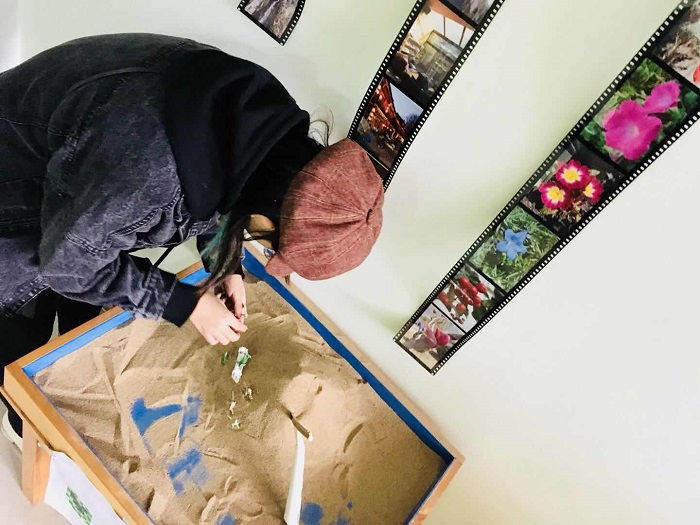 10月26日下午,心理咨詢中心開展了沙盤體驗活動。大一學生以班級為單位前往心理咨詢中心體驗沙盤。同學們圍在小小的沙盤桌前,或撫摸細細的流沙,或構想自己心中想要搭建的小世界。沙盤游戲,又稱箱庭療法,是一種心理療法。它通過用櫥窗里的微縮模具在沙盤上構建一些場景表達創作者的所思所想。沙盤游戲適用于任何年齡,它有著代替人對思想輸出的局限性的優勢。