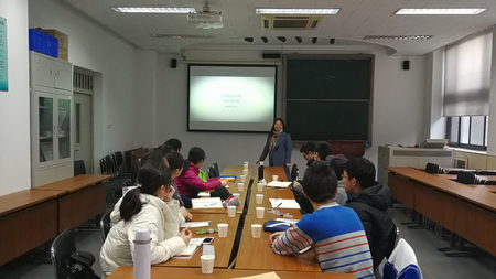 張老師首先為翱翔學員們播放了《北服宣傳片》,展示了我校近年來取得的突出的研究成果和產生的社會影響力;同時還從環保型阻燃聚酯及其織物、熱致變色印花織物、新型電致變色材料、靜電紡納米纖維膜及其產品、廢舊紡織品循環利用等領域給學員們進行了耐心細致的講解。