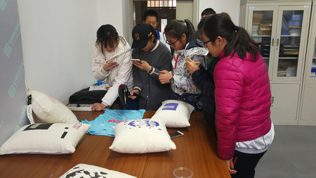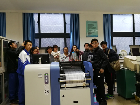 之后,張老師帶領學員們依次參觀了學院的織造實驗室、服裝材料安全檢測與評價實驗室以及紡織納米纖維實驗室等。學員們對這些研究領域充滿了興趣,并對感興趣的課題提出自己的疑惑和問題,得到相關實驗室負責老師的耐心解答。期間,學員們積極熱情地對展示的成果樣品進行了親身體驗活動。