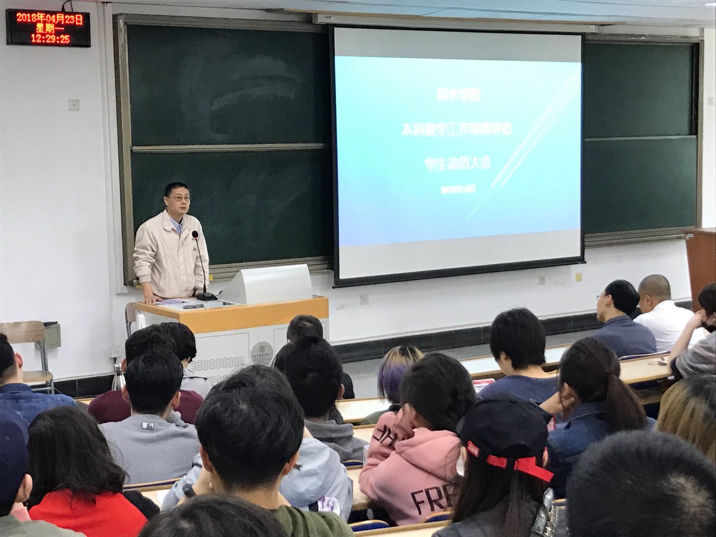 會上,關立新院長介紹了本科教學工作審核評估的意義和重要性。副書記胡志宇、季平老師對全體同學提出具體要求并號召廣大黨團員、學生骨干要在教學評估中發揮作用。
