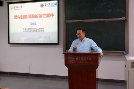 在將近兩個小時的講座中,從智能服裝的發展歷程以到發展前景,從歐美國家隊紡織行業的設想及計劃到我國相關領域的政策和研究現狀,王宏志老師為大家系統地介紹了智能服裝目前的研究現狀以及今后的發展方向。其中,王老師還細致地為老師同學們介紹了王老師團隊在變色器件、變形器件、傳感器件、能量轉化器件等智能服裝柔性器件上的研究工作以及研究成果,并提出一些建設性的創想。