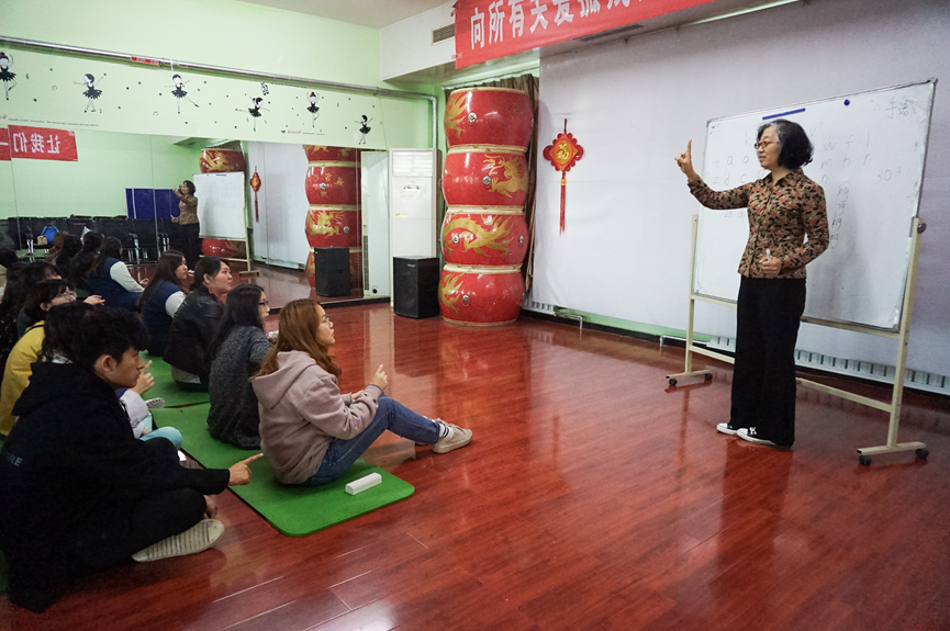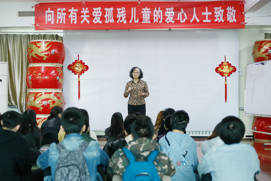 康復中心院長全貴云首先為同學們介紹了天云康復中心聽障兒童的情況:在康復訓練中心有這樣一群孩子,在嬰幼兒時期因為遺傳基因、用藥問題,或者其他意外造成了聽力障礙??祻陀柧氈行牡姆辗秶敲@兒康復訓練和智障兒童康復訓練,康復訓練項目由言語康復訓練、親子課、家庭指導、感覺統合訓練、智障孩子的早期干預等幾項康復訓練組成。這些孩子們是來自全國各地的貧困聽障兒童,其中有孤兒、還有多重殘疾的,最小的孩子2歲,最大的35歲,他們來到中心重點學習語言和發音,大齡人員還可以學習技能,讓他們重拾自信,回歸社會。