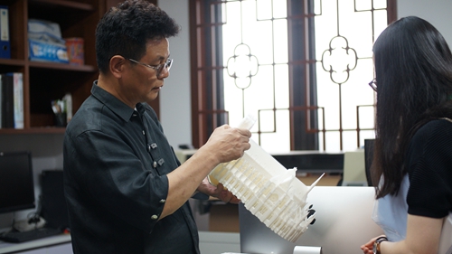 5月31日上午9時30分,同濟大學林家陽教授到服裝藝術與工程學院深度訪談。林家陽教授考察了學院本科專業重點實驗室,參觀了學院校企合作工作室,聽取了服裝藝術與工程學院自評報告匯報并與學院領導和教師代表進行座談。