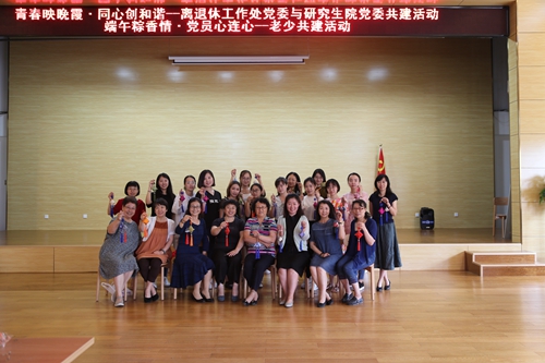 6月12日上午,研究生院黨委與離退休工作處黨委聯合舉辦了“端午粽香情·黨員心連心”——老少共建活動。來自兩個分黨委的30名黨員參加了活動。活動中,老少黨員共話端午情,交流談心,互幫互助制作端午香包,離退休工作處負責人韓福華和研究生院黨委副書記崔嫻嫻分別對活動進行了點評,鼓勵老少黨員取長補短、互相提高,表示端午活動豐富了離退休教職工的精神文化生活,增進了研究生對中國傳統文化的理解,提升了研究生黨員為老前輩服務的意識。