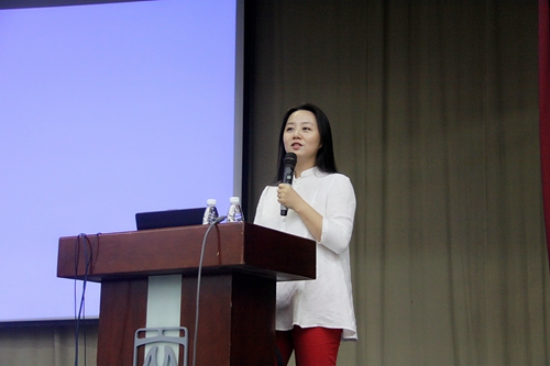 執(zhí)行院長王永進(jìn)致歡迎詞,對(duì)同學(xué)們提出殷切希望,鼓勵(lì)學(xué)生們?cè)趯I(yè)學(xué)習(xí)上自勤自信。大會(huì)第三項(xiàng),全國十佳設(shè)計(jì)師楚艷老師作為優(yōu)秀校友向同學(xué)們分享了自己的人生經(jīng)歷,與同學(xué)們探討天賦才華和天賦使命,并鼓勵(lì)同學(xué)們要有責(zé)任擔(dān)當(dāng)、有理想信念,堅(jiān)持夢想,不忘初心。