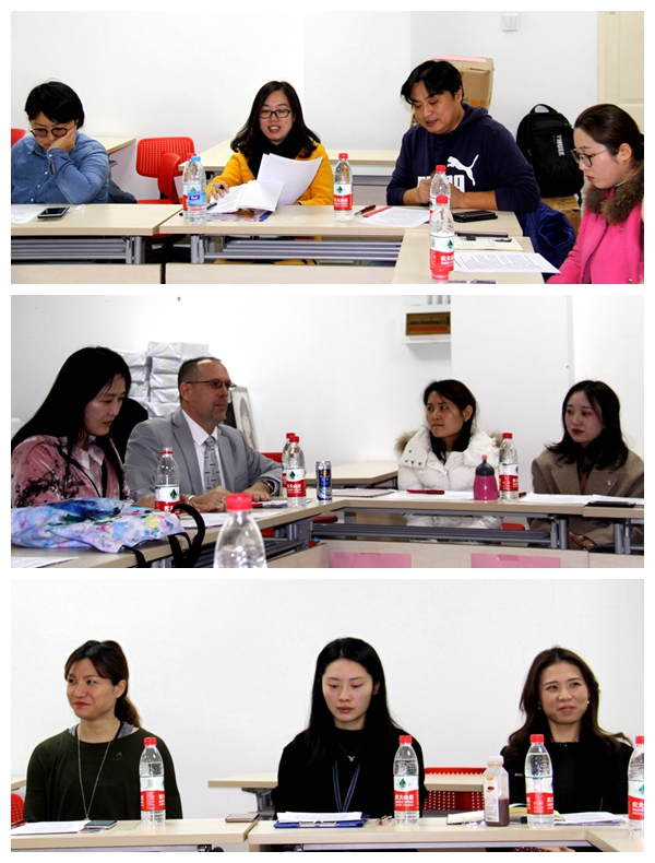 11月22日上午,國際學院在5號樓801室召開2018-2019學年第一學期期中檢查教師座談會。本學期擔任國際學院一年級留學生班、港澳臺僑生班、全英授課表演班部分教師:高海軍、謝天曉、盛思喆、趙冰清、郭東芳、TINNEY、丁培利、韓文艷、王香琴、萬丁、李燕等11人參加了座談會,國際學院院長席宇梅攜教學教務主管暴巍、招生主管周旻、學生工作教師張海霞及全英授課表演班班主任梁怡參會。會議由暴巍主持。