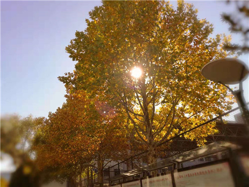 一抬頭,滿天的秋葉,還有北京的藍天,一瞬間覺得,在北服真好。——蘇慧茹(馬來西亞)
