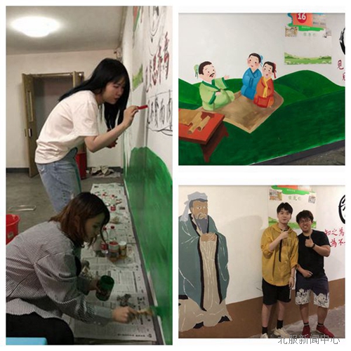活動從上午九點開始,共分成16個組,全天完成了新紀家園小區2號樓共17個樓層的電梯墻繪制工作。經過前期與社區的溝通,墻繪內容以輕松、可愛的卡通人物風格,向社區居民宣傳弘揚中華傳統美德,作品美化了小區環境,得到了社區居民的廣泛認可。與此同時,參與的師生在活動過程中將日常所學應用于傳播優秀文化和美化社區造福居民,增強了自身的專業自信和實踐能力。