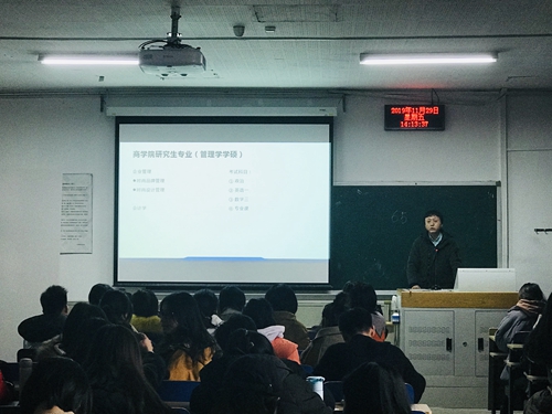 方剛教授進行了考研和推免研究生事項的說明。他詳細講解了商學院研究生招生和考試、推免情況,督促大一學生要抓緊時間、踏實學習、打牢基礎,提早為將來報考研究生做準備。