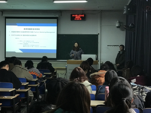 方剛教授首先介紹了近年來學校和商學院的本科生國際交流項目情況,推送了校國際合作與交流處的公眾號、網址等,介紹了英國南安普頓大學時尚管理專業和日本文化學園大學時尚創意學系的校級交流項目開展情況,并進一步強調如果有意向申請校際交流項目的學生必須從兩個方面加強學習:一是加強英語學習,提前參加資格考試;二是加強基本課程學習,保證學業成績達到對方院校的要求。