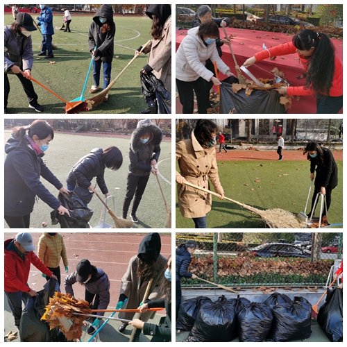 前一天持續一整天的降雨和當天的大風為清掃工作帶來了難度,學校操場上堆積了不少落葉。活動過程中,大家手持掃帚、簸箕,劃好區域,明確分工,天氣雖然寒冷,但每個人都熱情高漲,干勁十足,黨員們或手拿掃帚清掃地上的落葉,或清運成堆的垃圾,個個不怕臟、不怕累,呈現出一派熱火朝天、擼起袖子加油干的景象。充分展現了黨員同志們不怕累、不怕臟、不怕苦的精神風貌。