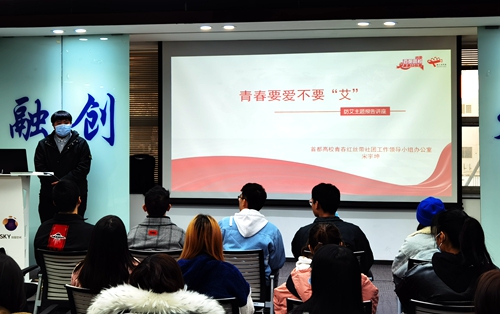 11月27日,商學(xué)院19609團(tuán)支部與順義區(qū)天竺鎮(zhèn)團(tuán)委聯(lián)合開(kāi)展防艾主題講座。來(lái)自首都高校青春紅絲帶社團(tuán)工作領(lǐng)導(dǎo)小組辦公室的專(zhuān)業(yè)講師從艾滋病的來(lái)源、傳播途徑、預(yù)防方法、緊急措施四個(gè)方面為同學(xué)們開(kāi)展了艾滋病防控知識(shí)普及講座。